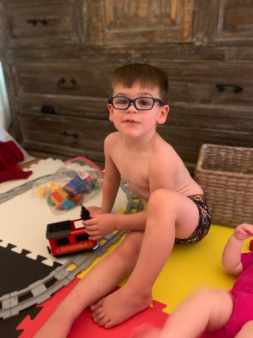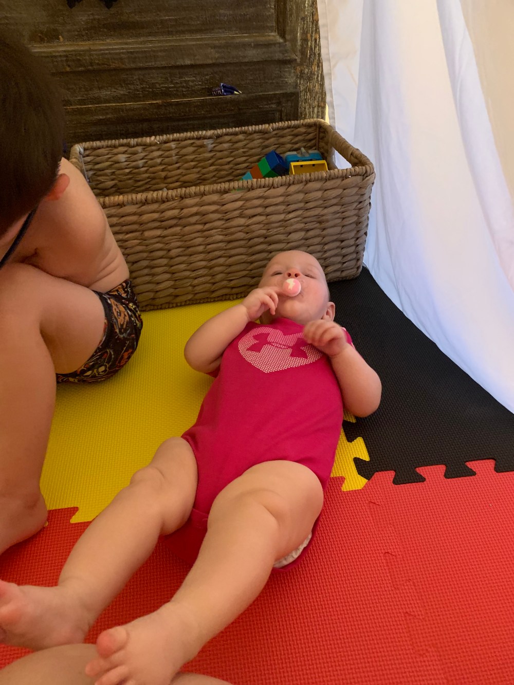 At this current moment, everything is out of my hands. So I’m focusing on working with Demi on tummy time, what vision she does have, loving on her and spending time with Beau. Today we built a fort and played in there for a bit.